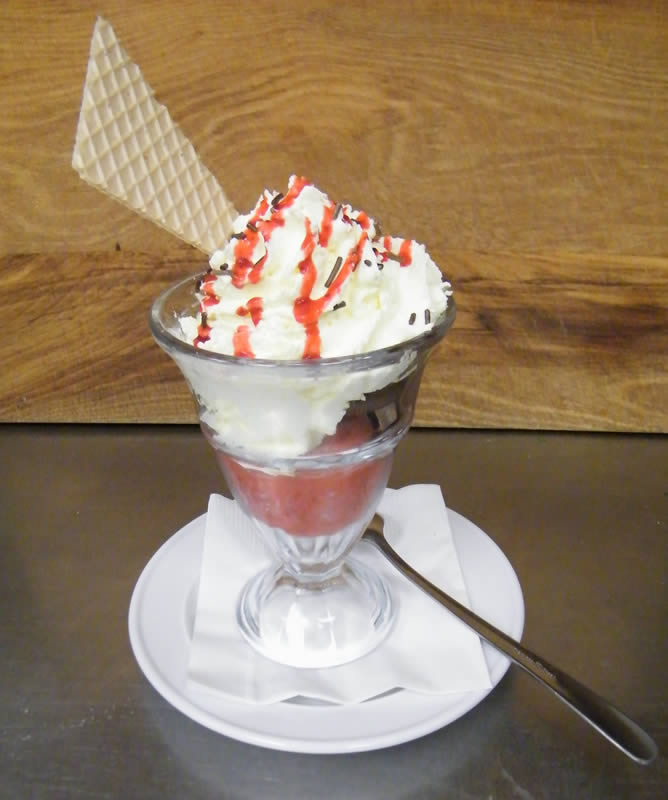 2 flavors home-made Italian ice cream with whipped cream and topping (Please ask our friendly waiting staff for today's flavour choices)