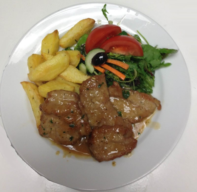 Escalope pan seared then cooked with a marsala wine reduction sauce